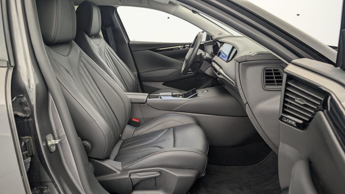 intérieur cuir grainé noir basalte et toile ds : ciel de pavillon clair décors de panneaux de porte chrome guilloché volant en cuir fleur mistral console centrale en toile ds mistral planche de bord en toile ds noir basalte façon écaille panneaux de portes en toile ds noir basalte façon écaille sellerie en cuir grainé noir basalte et toile ds
