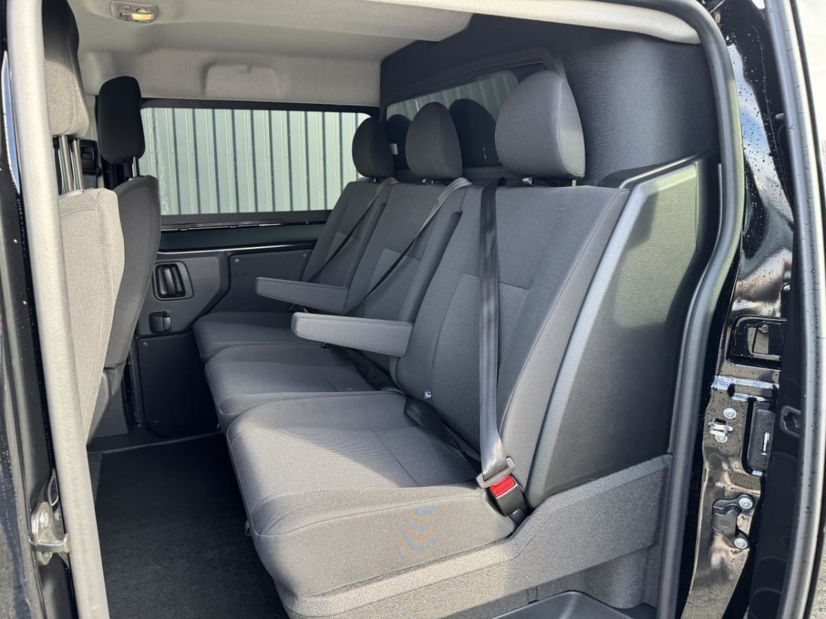 banquette fixe 3 places en rang 2 avec appui-tête réglables et 2 accoudoirs, position unique avec coffre de rangement amovible sous assises gauche et centrale (accessible depuis habitacle) et avec zone pour charge longue sous assise droite (accessible par la zone de chargement)