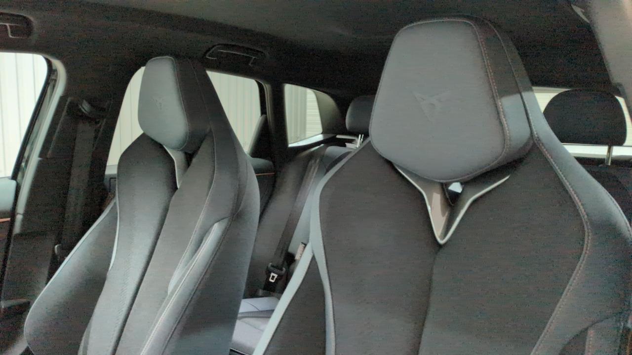 design intérieur deep ocean (sièges baquets tep + textile bleu acier) - logos cupra estampés sur les appuie-têtes - planche de bord bleu acier texturée avec aérateurs cuivrés - contre-portes en tep noir texturé - ciel de pavillon noir - sièges conducteur et passager avec réglage manuel en hauteur et lombaire