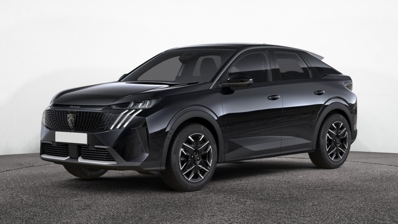 eléments de style extérieur : bandeau entre les projecteurs noir laqué avec logo 3008 + calandre couleur caisse